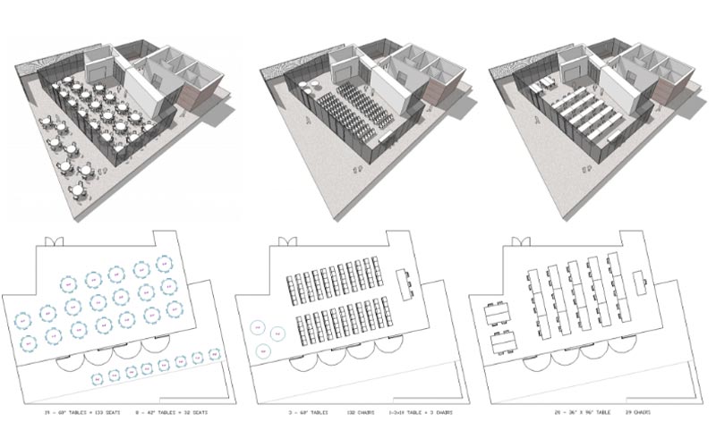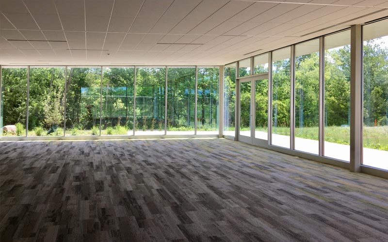 The interior program evolved organically to accommodate an appropriately sized 125 person multipurpose room with non- parallel walls for acoustical benefits and a staff room to be used as a pre-function space during special events. The inviting foyer space has room for multiple displays as well as engaging views to the river corridor. Support spaces include storage for tables and chairs, group restrooms, 2 single use restrooms with one dedicated to the outdoors, and a mechanical/utility room.